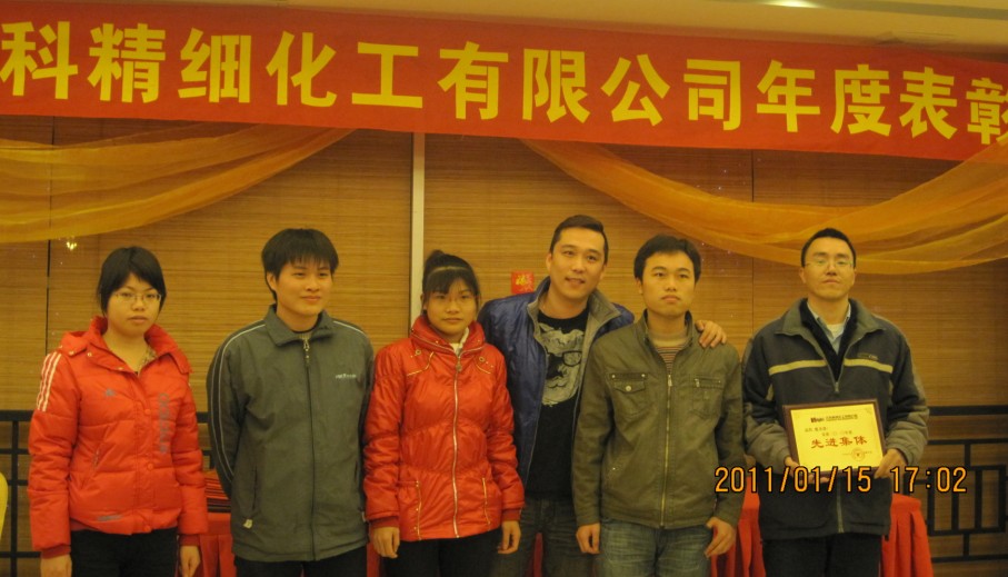 中山市漢科精細(xì)化工有限公司于2011年1月15日晚上舉行了“年度表彰大會暨迎春聚餐活動”。大會由全體員工及其部分直系家屬以及特邀嘉賓參加。開始由姚慶祥副總經(jīng)理作開幕致辭,然后由王太炎董事長、王躍副總經(jīng)理分別向獲得年度優(yōu)秀員工、表揚(yáng)員工和先進(jìn)集體的個人和單位頒發(fā)榮譽(yù)證書和獎金。