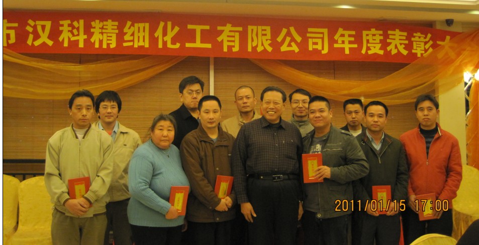 中山市漢科精細(xì)化工有限公司于2011年1月15日晚上舉行了“年度表彰大會暨迎春聚餐活動”。大會由全體員工及其部分直系家屬以及特邀嘉賓參加。開始由姚慶祥副總經(jīng)理作開幕致辭,然后由王太炎董事長、王躍副總經(jīng)理分別向獲得年度優(yōu)秀員工、表揚(yáng)員工和先進(jìn)集體的個人和單位頒發(fā)榮譽(yù)證書和獎金。